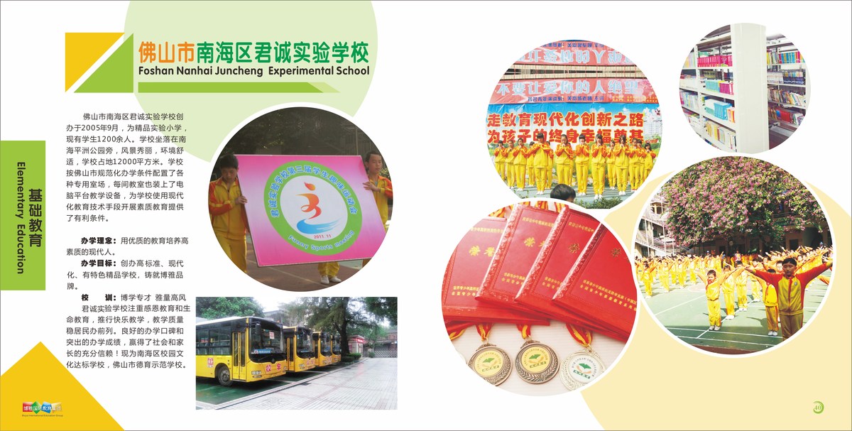 佛山市南海区君诚实验学校创办于2005年9月,为精品实验小学,现有学生1200余人。学校坐落在南海平洲公园旁,风景秀丽,环境舒适,学校占地12000平方米,现代化教学设施齐全,所有课室配备多媒体教学平台,建有图书室、电子阅览室、电脑室、语音室、科学实验室、队部室、广播室、舞蹈室、美术室、书法室、心理咨询室、卫生室、音乐室、体育器材室等18间功能室。建有标准篮球场和200米塑胶跑道。 办学理念:有优质的教育培育高素质的现代人。 办学目标:创办高标准、现代化、有特色精品学校,铸就博雅品牌。 校训:博学多才 雅量高风 君诚实验学校注重感恩教育和生命教育,推行快乐教学,教学质量稳居民办前列。良好的办学口碑和突出的办学成绩,赢得了社会和家长的充分信赖!现为南海区校园文化达标学校,佛山市德育示范学校。