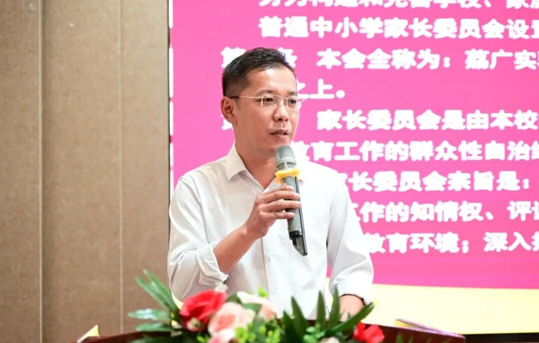 中学德育处王宝主任郑重宣读 《荔广实验学校家委会章程》 字字铿锵,条条明晰 十分钟的宣读 不仅是一纸规章的传递 更是一份责任的交付 为家校合作描绘共育蓝图