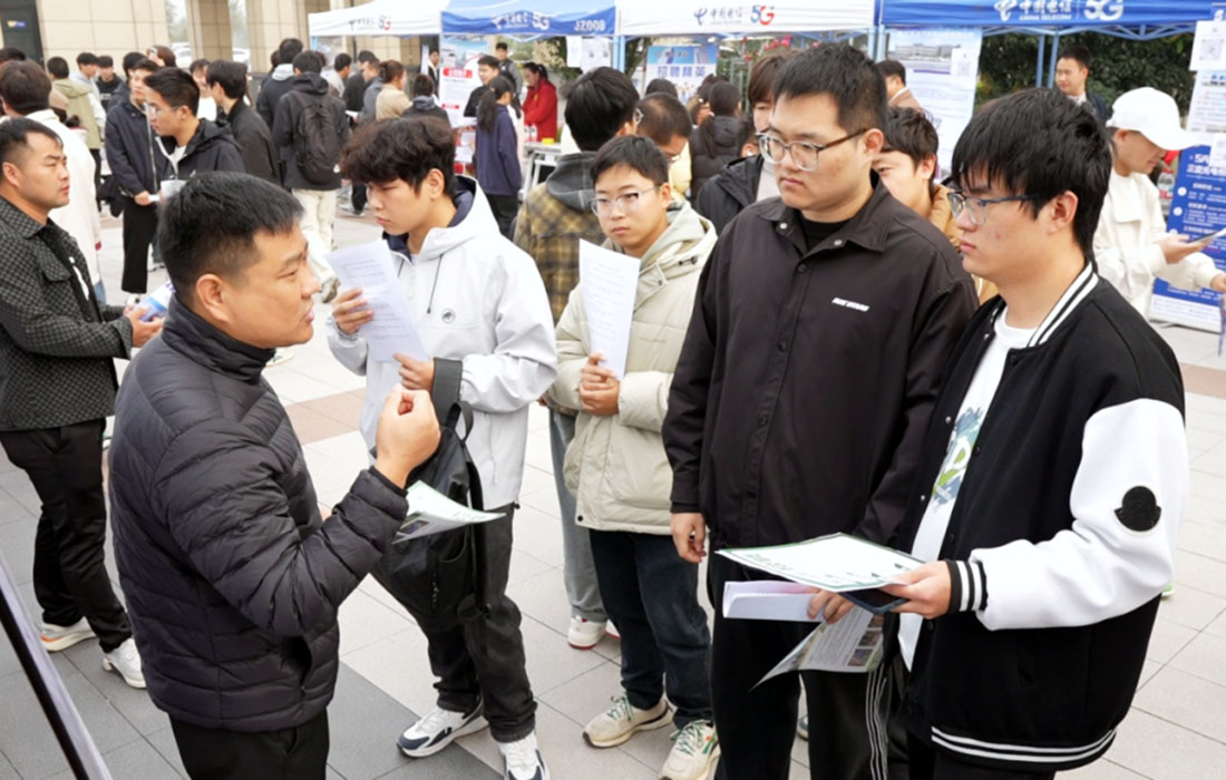 “大家别慌,记住看、听、问、递、进五字诀。”双选会现场,学校就业办、各院系负责人始终在人群中穿梭,为学生们现场支招、精细服务。