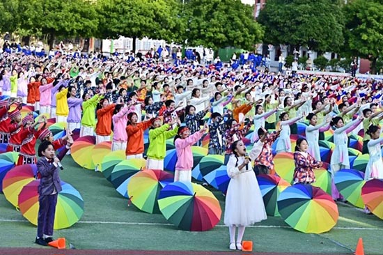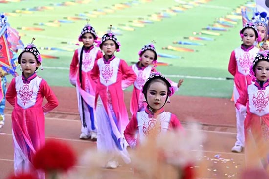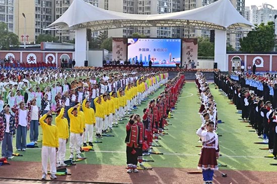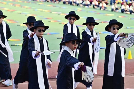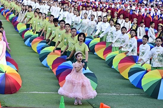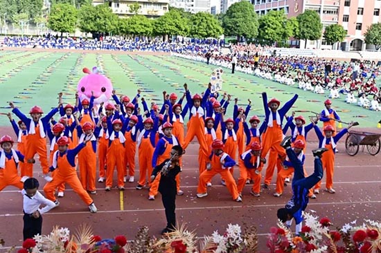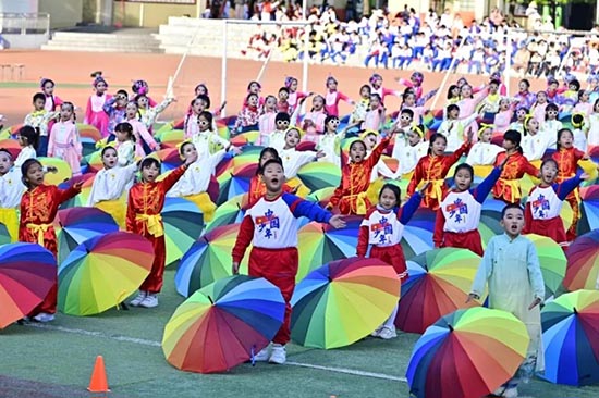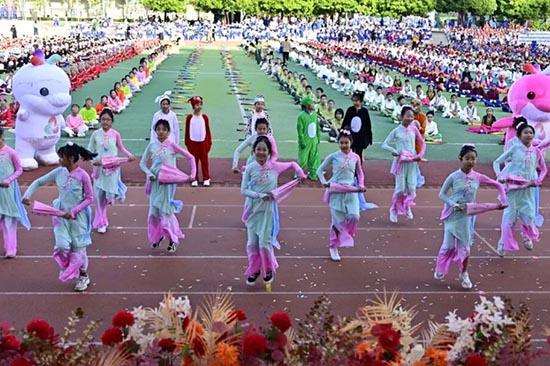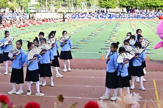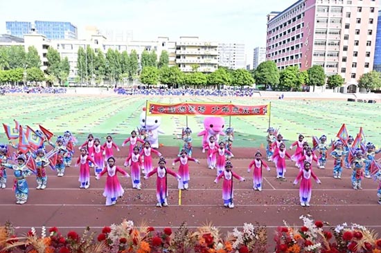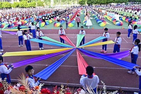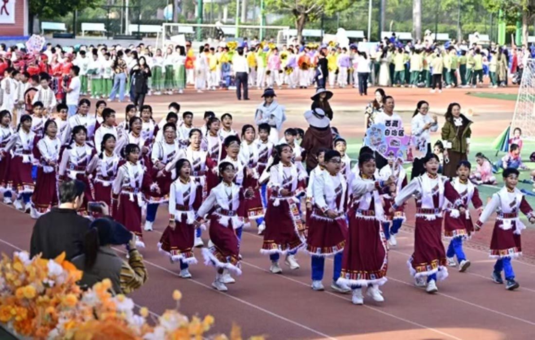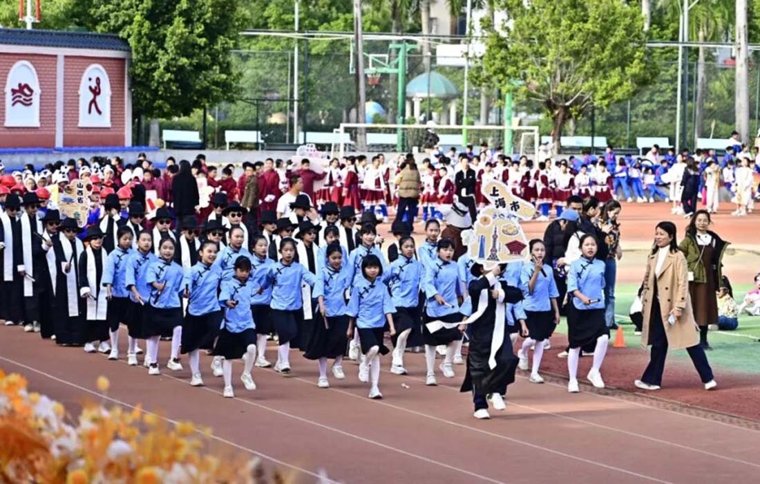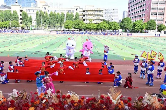 当激昂的《运动员进行曲》响彻校园 最令人瞩目的 “闪亮我登场”全运大巡游震撼上演 本届开幕式匠心独运 小学部72个班级 化身34个省级行政区“代表团” 带来一场融合体育精神与地域文化的创意展演