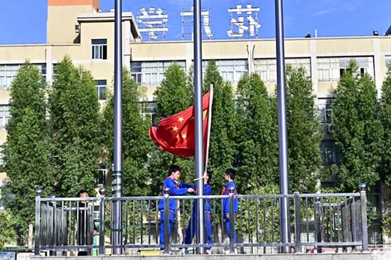 在庄严的国歌声中 五星红旗冉冉升起 全场师生肃立行注目礼 爱国情怀在心中激荡
