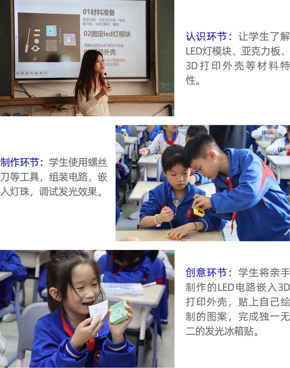通过实物拆解与动画演示,同学们深入理解了发光原理、电路基础与用电安全知识,在思考中点燃对光电科技的好奇。